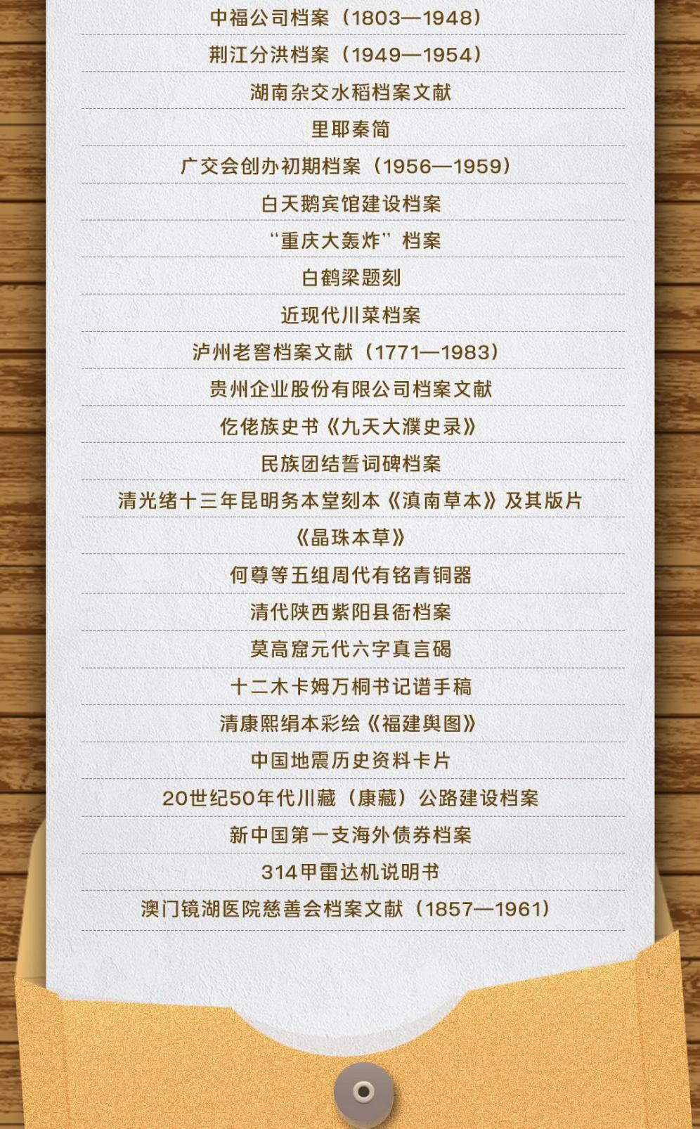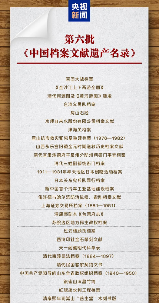 2025年6月9日,国家档案局正式公布第六批《中国档案文献遗产名录》,由湖南省文物考古研究院和里耶古城(秦简)博物馆联合申报的“里耶秦简”成功入选。
